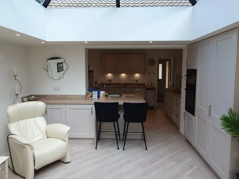 We are incredibly proud of the work we did on this project. The satisfaction of our clients speaks volumes about the quality and attention to detail that we bring to every build. Be sure to check out the before photo to fully appreciate the transformation and how these stunning bi-folding doors complete the look. The journey from a separate kitchen and lounge to an integrated, open-plan living space has been remarkable, and we are honoured to have been part of Carol and Alan’s home improvement journey.